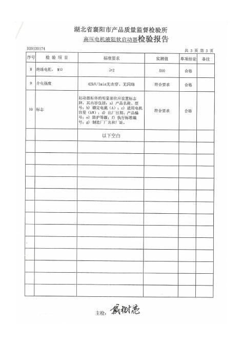 高壓電機(jī)液阻軟啟動(dòng)器檢驗(yàn)報(bào)告